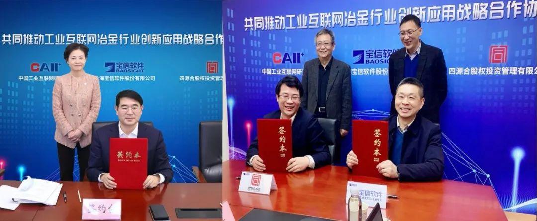 1月26日,宝信软件(中国宝武工业互联网研究院)与中国工业互联网研究院、四源合股权投资管理有限公司举行《共同推动工业互联网冶金行业创新应用战略合作协议》云签约仪式。宝信软件副总经理钱卫东、中国工业互联网研究院副院长冯旭、四源合投资副总经理陆俊勇分别代表三方在合作协议上签字。中国宝武工业互联网研究院院长、宝信软件党委书记、董事长夏雪松,中国工业互联网研究院院长徐晓兰,四源合投资首席执行官、创始合伙人周竹平共同鉴签。